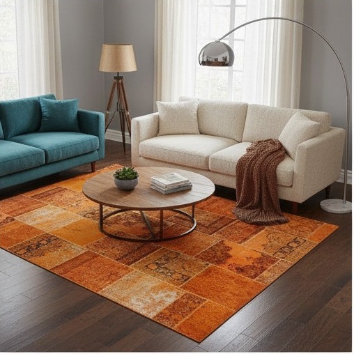 This curated Warm Tones Collection celebrates the cozy, inviting warmth of handwoven vintage rugs in rich oranges, earthy browns, luminous golds, and deep reds. Each piece carries the soul of traditional craftsmanship—from intricate patchwork and floral motifs to geometric ombré and antique tribal patterns—infusing any space with timeless character and tactile comfort.